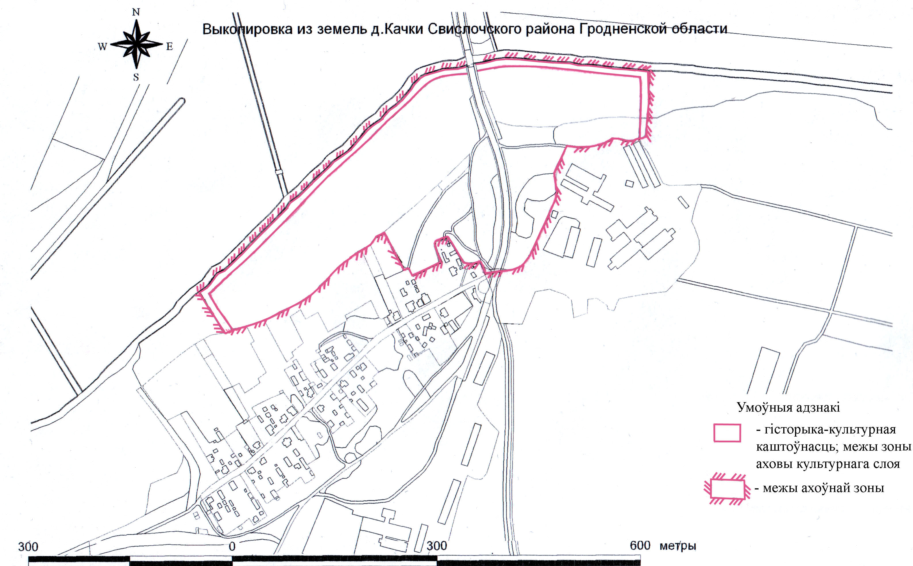 21. Границы охранной зоны историко-культурной ценности – селище периода средневековья (XII–XVII вв.) в д. Качки, на северной окраине деревни (шифр 413В000477), на севере проходят по руслу реки, на западе и востоке установлены на расстоянии десяти метров от границы территории историко-культурной ценности.