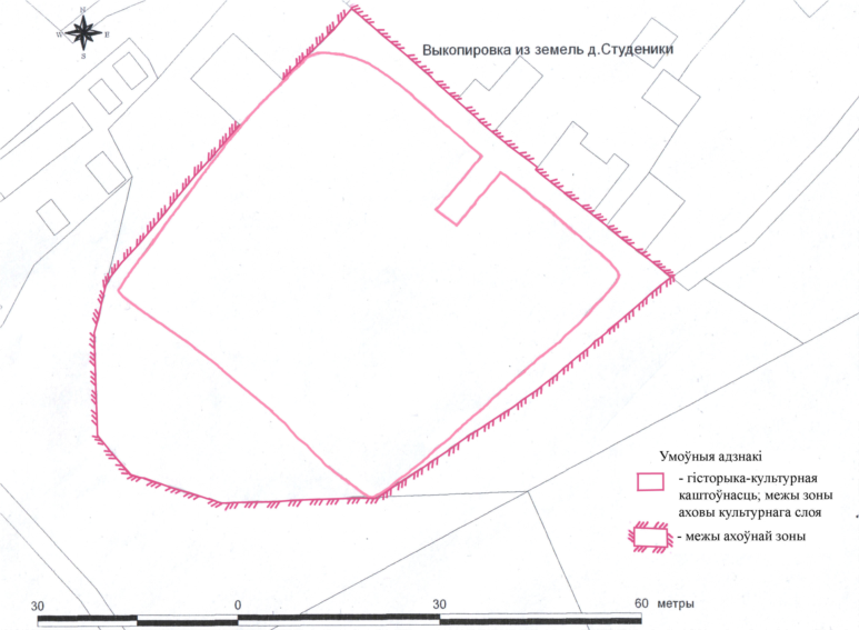 23. Границами охранной зоны историко-культурной ценности – каменные могилы (XIV–XVI вв.) в д. Студеники, на восточной окраине деревни (шифр 413В000488), являются: