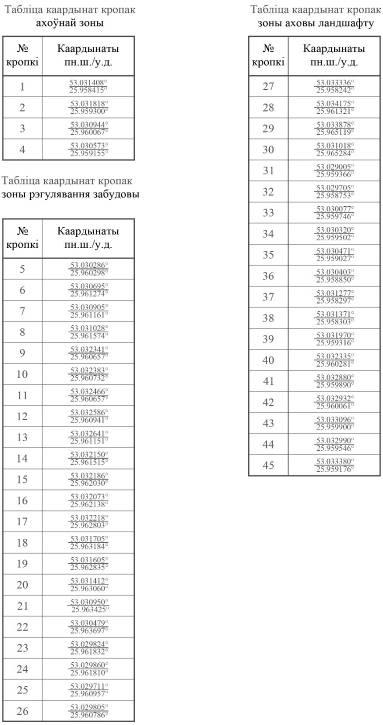 Межы зон аховы дадзены ў геаграфічнай сістэме каардынат.