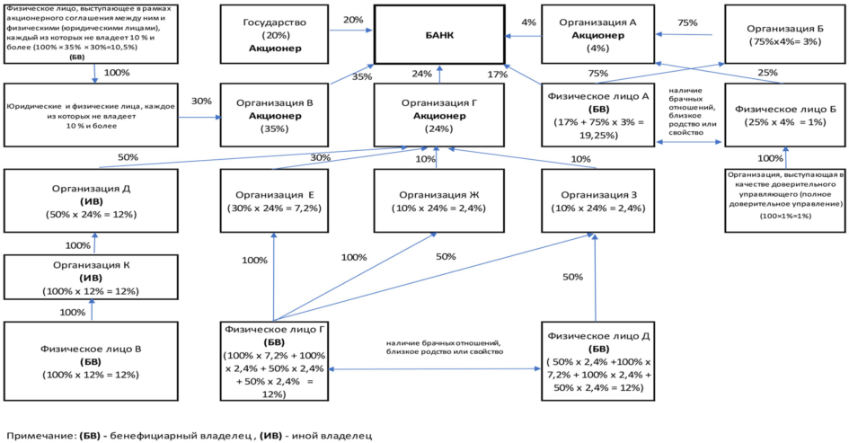 Критерием для признания организации или физического лица в качестве иного владельца является наличие у них законных оснований для владения прямо или косвенно (через третьих лиц) акциями банка, которые, в свою очередь, находятся во владении бенефициарного владельца, что в конечном итоге предоставляет им право владеть на совокупной основе не менее десятью процентами акций банка.